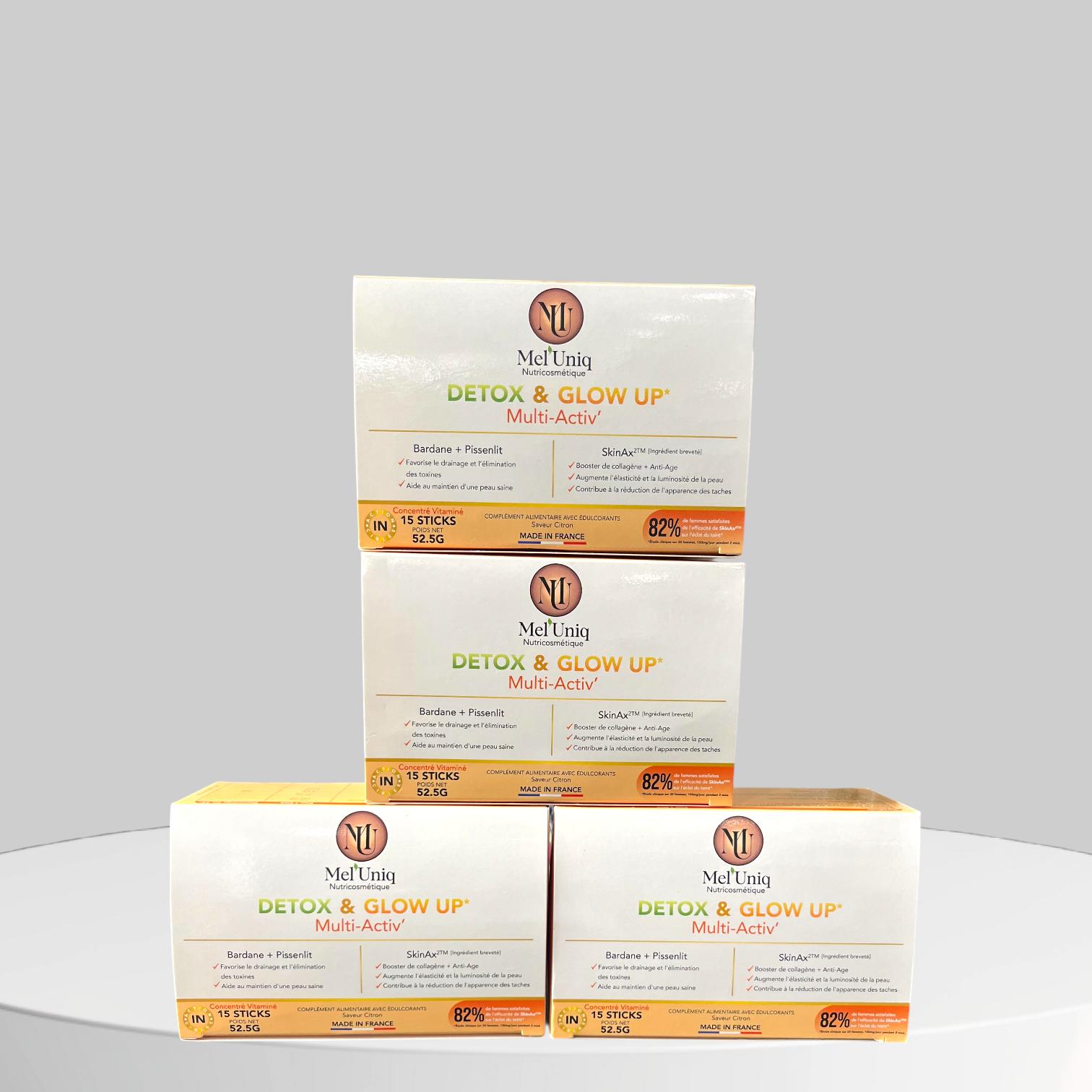 Pour profiter pleinement des bienfaits purifiants et clarifiants de Détox & Glow Up sur l'organisme, nous recommandons de suivre une cure de 3 mois consécutifs afin de créer une "mémoire cellulaire" pour des effets durables et visibles sur votre peau.
